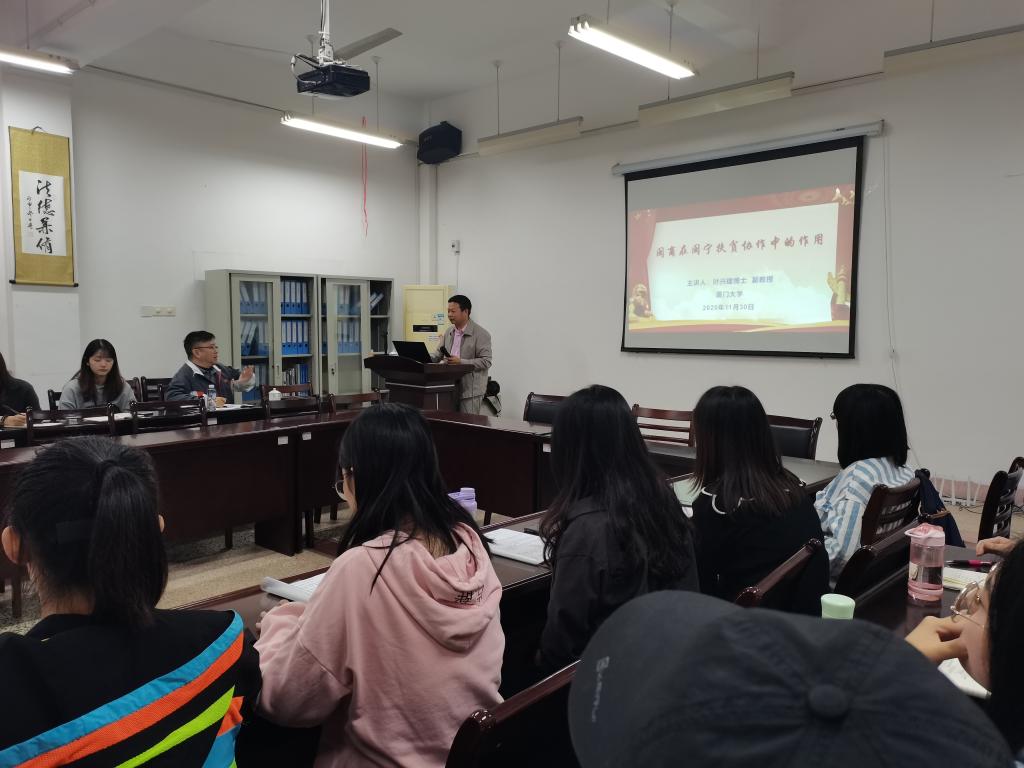 在讲座的互动问答环节中,学生代表和教师分别针对闽商参与闽宁协作扶贫,以及以实践为取向的研究两主题踊跃提问,讲座在一问一答中顺利结束。