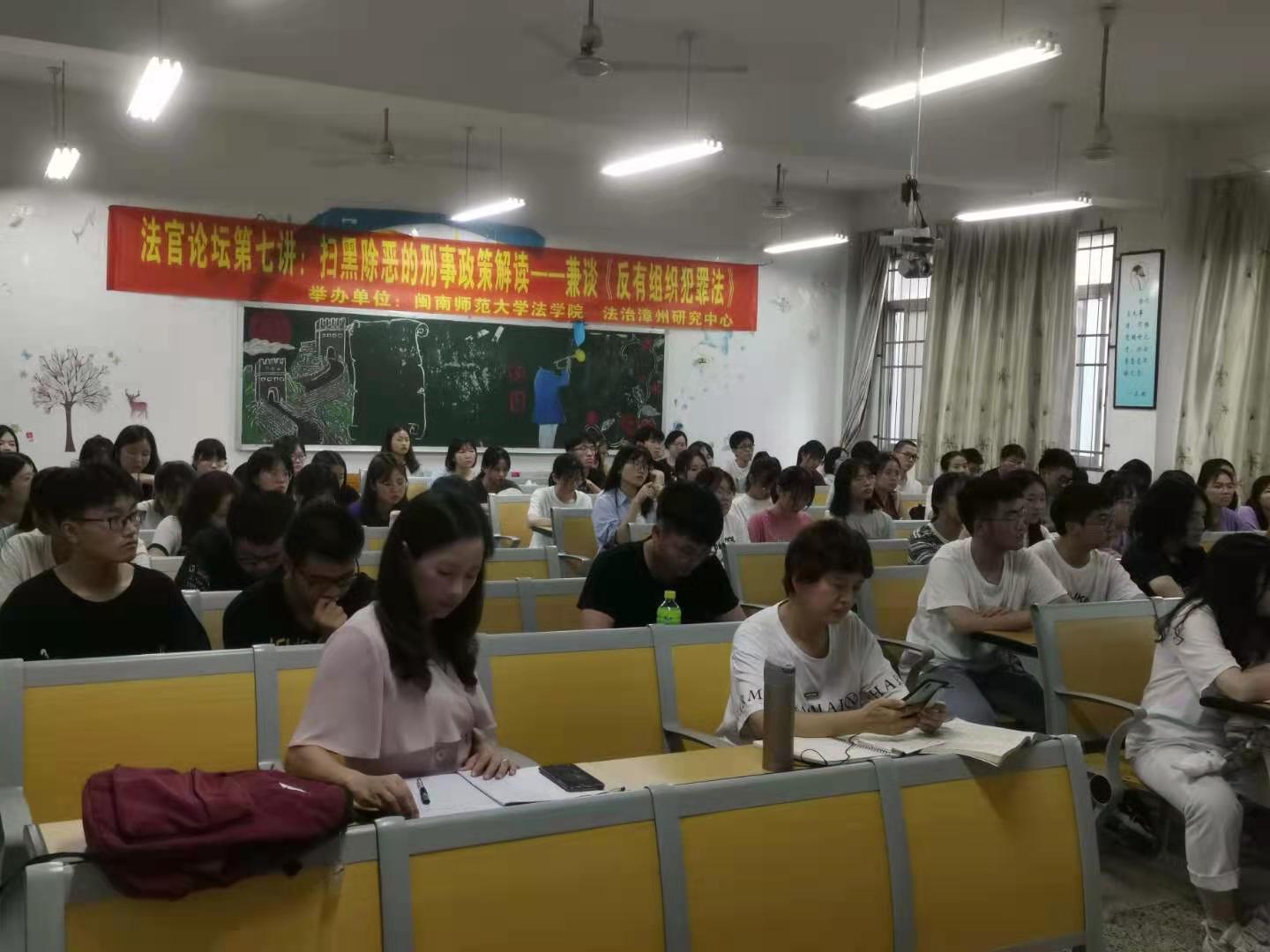 举办的第七期法官论坛,做了题为“扫黑除恶的刑事政策解读——兼谈《反有组织犯罪法》”的专题讲座,学院2020级法学专业学生及法学专业老师共80多人参加,讲座由风车动漫p