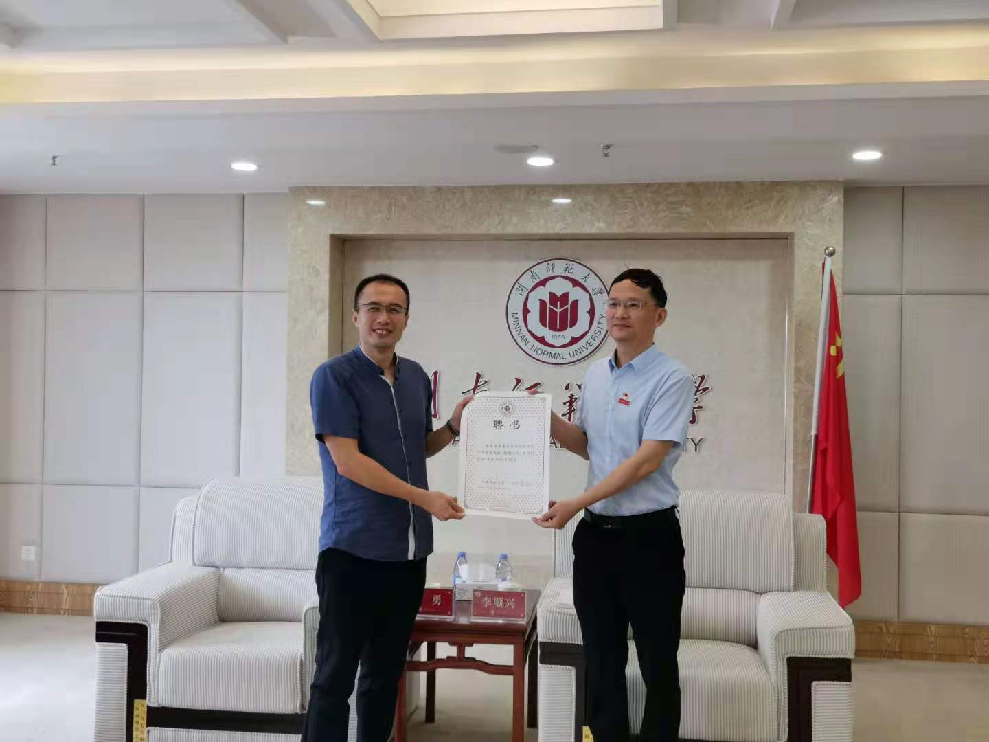 部分老师参加了聘任仪式,校长李顺兴为李勇教授颁发了聘任证书。