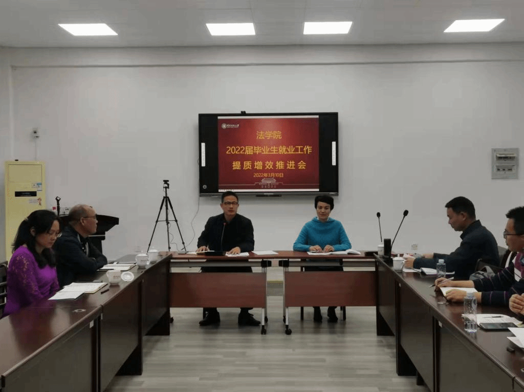 在博西106召开2022届毕业生就业工作提质增效推进会,会议由院长何东平主持,学院全体教职工参会。
