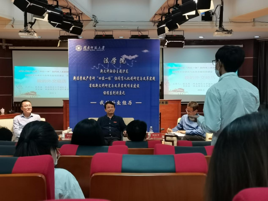 在本次沙龙过程中,两位主讲人首先分别讲述了自己的外交经历,随后以此为基石与其他沙龙参与人展开了热情的交流与互动。从教师到外交官的职业转化经历分享,两位主讲人提出建议:学生应当好好珍惜当下,充分利用可利用的条件以提升个人的实力,才能实现自己的理想充分发挥自己的人生价值;两位主讲人还具体从法学专业角度出发,指出外语对于法学专业的学生来说是强劲的助力,建议同学们应当注重对于外语能力的提升;两位主讲将主题升华阐述个人与国家密不可分,而当代青年人的使命应当是不断提升自身的个人素养为祖国发展贡献个人力量。