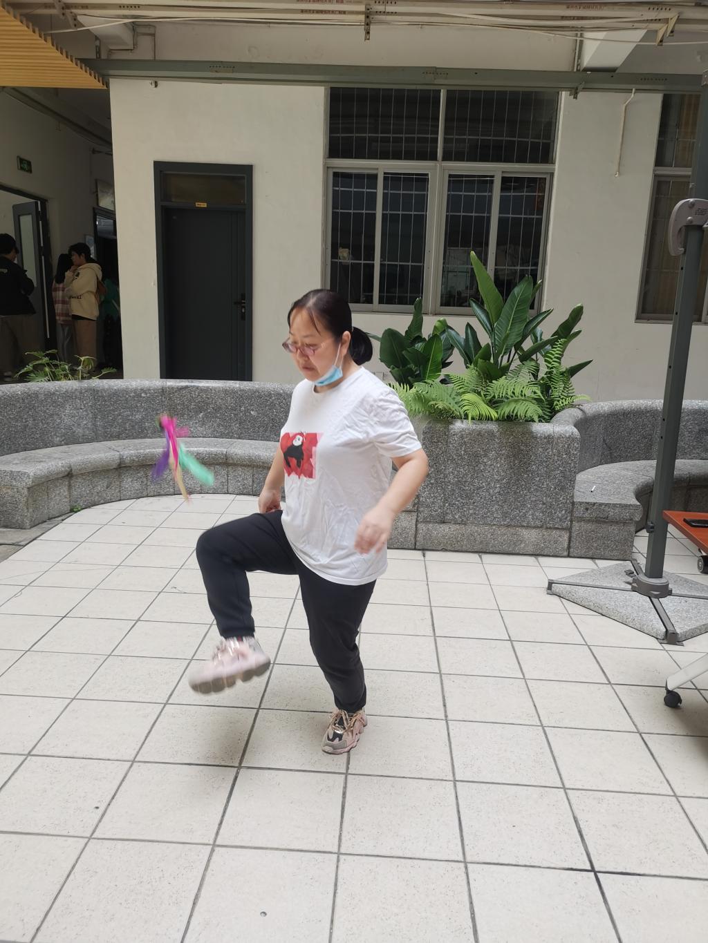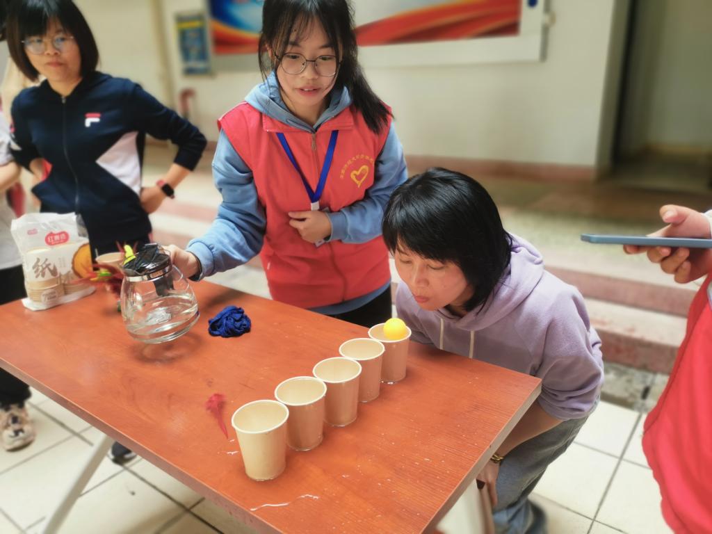 活动共有跳绳、投壶、夹弹珠、踢毽子、吹乒乓球等5个项目,游戏过程中,女教职工们积极参与、奋勇争先,游戏过程充满了欢声笑语,现场气氛热烈。