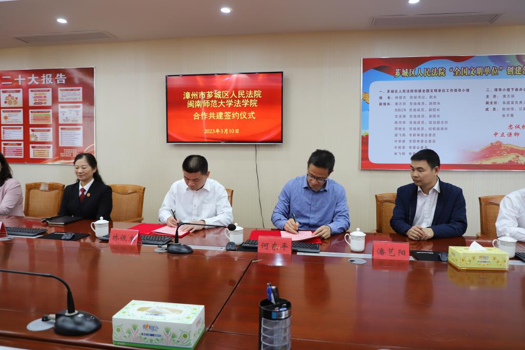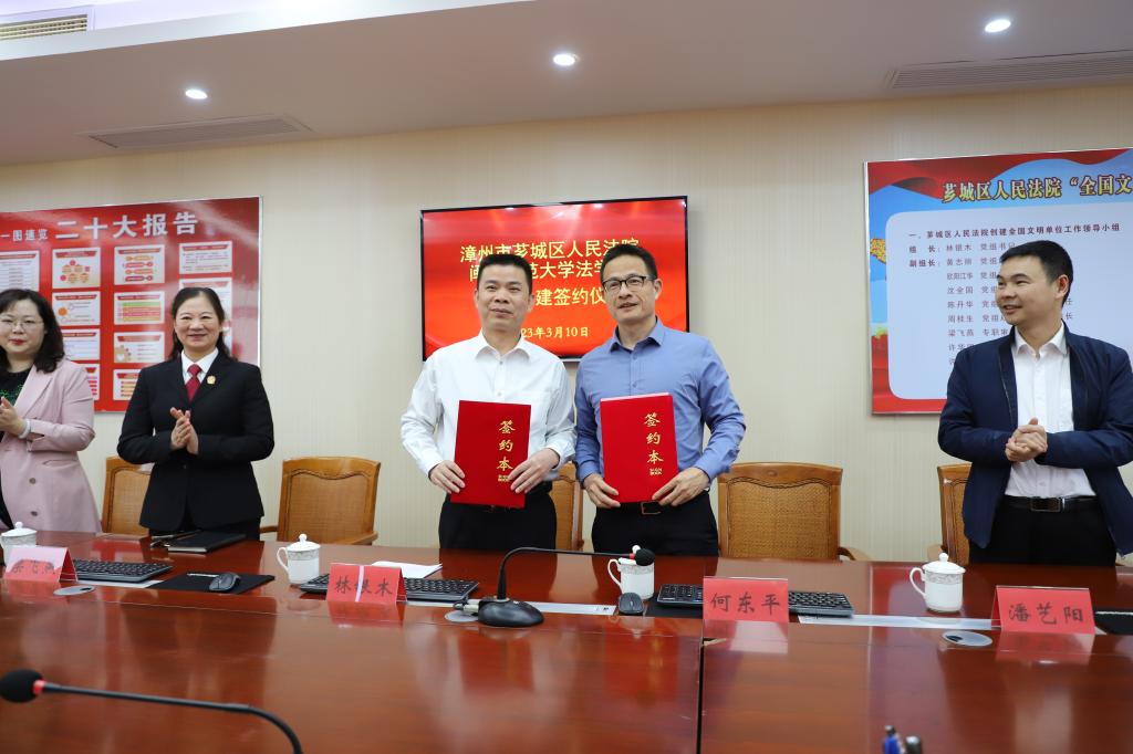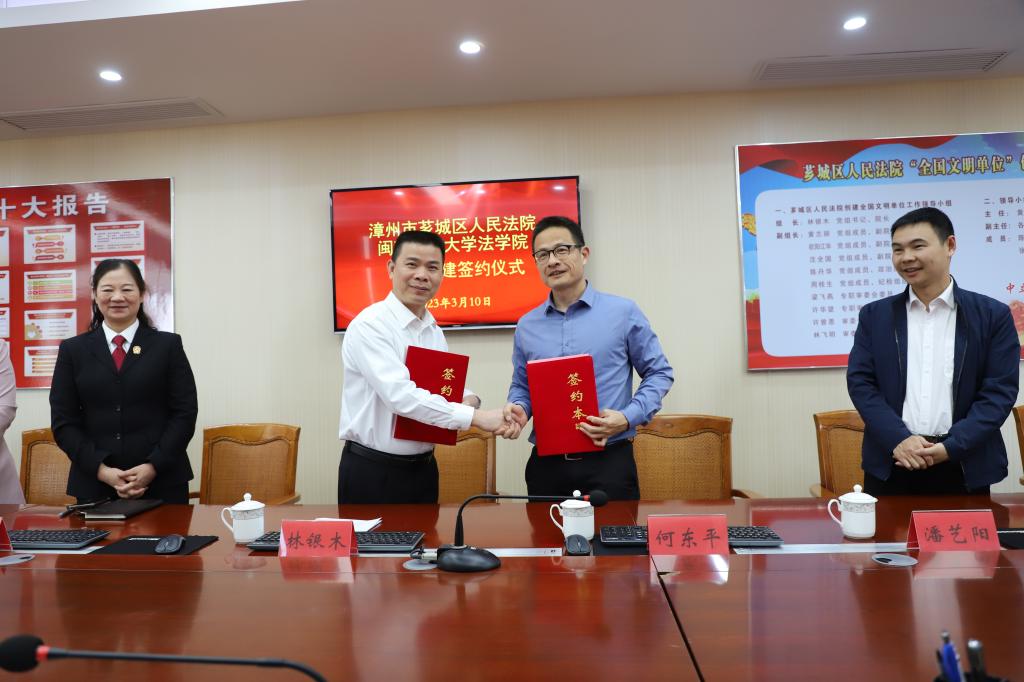 与漳州市芗城区人民法院举行合作共建签约暨教学实践基地揭牌仪式。