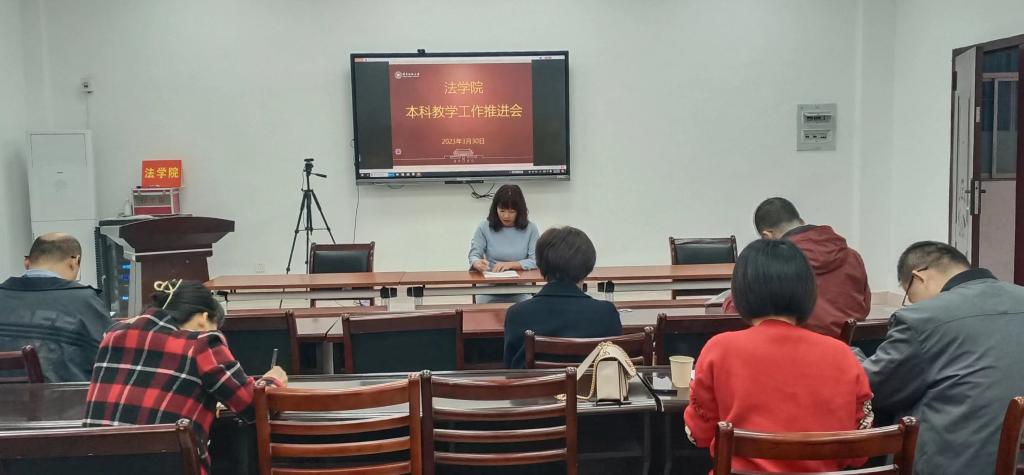 副院长郭细卿主持。政治学与行政学系郑容坤主任、法律系李亮国主任、社会工作系方劲主任,学院教学督导老师张艺华、余瑞萍及教务科全体工作人员等参加了会议。