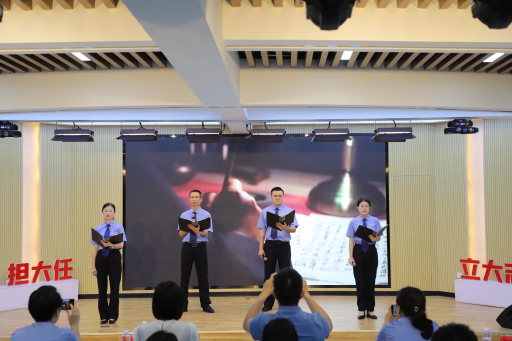 艺术团剧社带来情景剧《正义的追诉》。故事讲述了一座位于偏僻山峰的假烟制售窝点被查封后,租给他们场地帮助制造假烟的父女俩也受到调查,发现疑点的检察官们突破重重迷雾,探寻出事实的真相。
