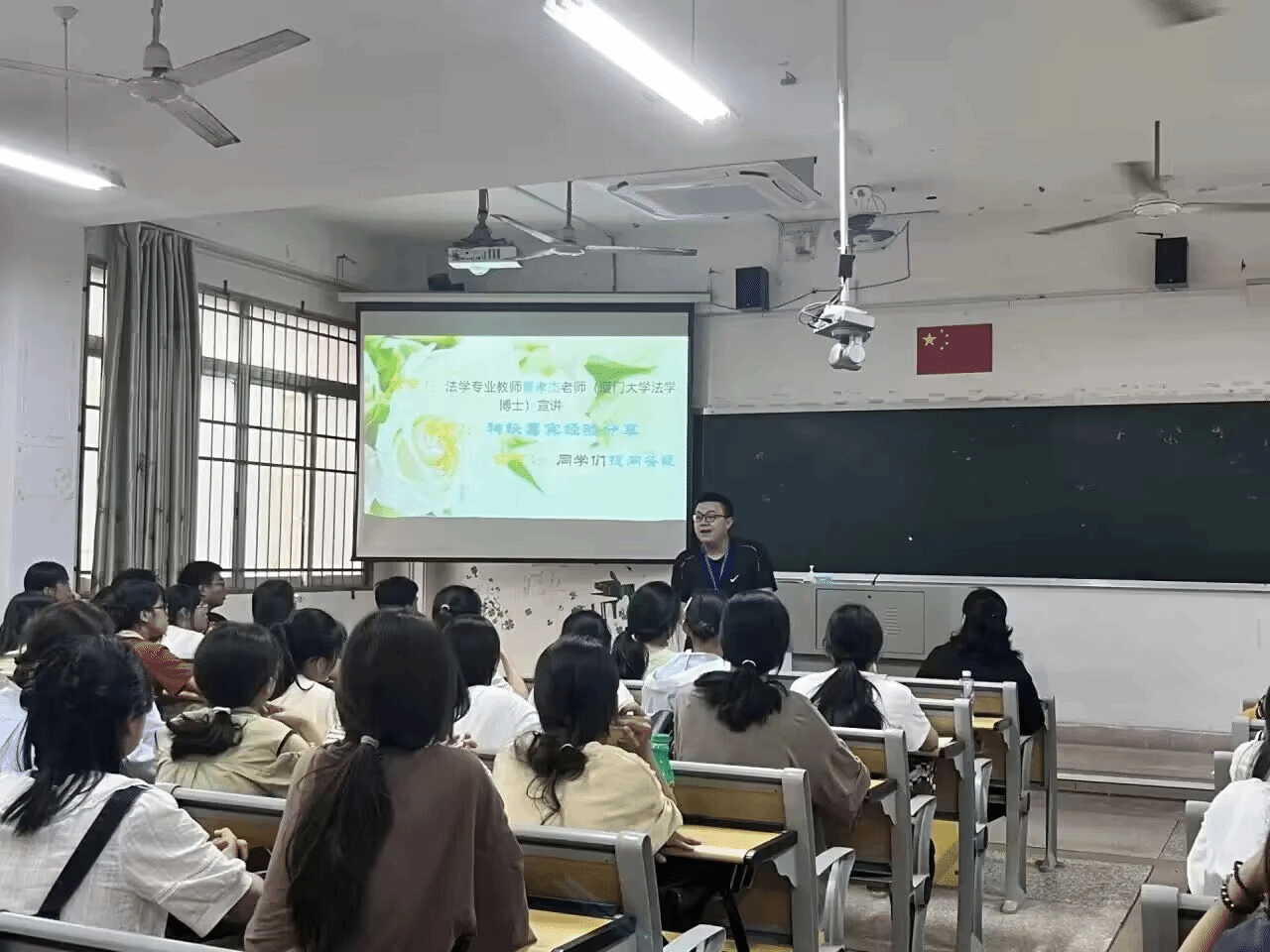宣讲会上,2016年毕业于法律(后更改为法学)自考二学历的计算机学院的校友林培铭学长,为现场的同学们进行了经验分享。他讲述了自己学习法律自考二学历的初衷和体会,结合自己考入龙文区司法局的心路历程,给同学们一些启发,鼓励同学们珍惜在校时光,增加专业学习的机会,增强就业竞争力。