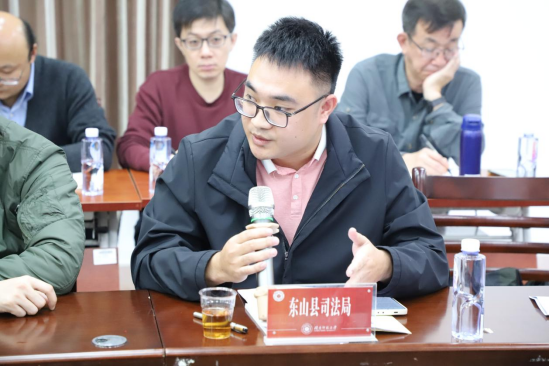 云霄法院常山法庭副庭长汤明智、龙海区人民检察院第一检察部检察官助理黄丹妍、平和县公安局副大队长叶灵军、东山县司法局陈城司法所所长陈立斌分别代表公检法司进行发言,分别就实践经验提出了一些具体的建议和措施,如加强基层组织建设、推进法治宣传教育、加强矛盾纠纷化解等。