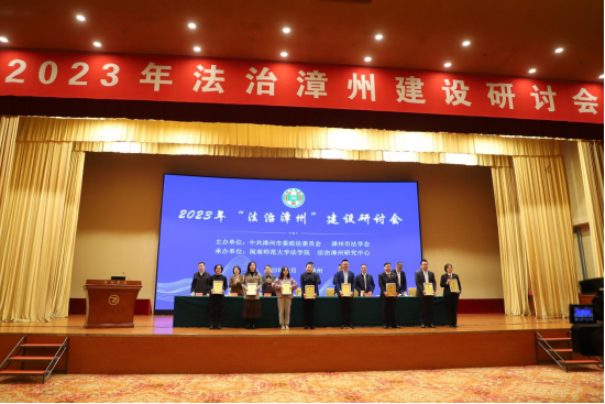 会议期间,市委政法委委务会成员、市法学会专职副会长陈天水通报表彰2023年在省级以上(第十八届泛珠三角合作与发展法治论坛、第三届东南法治论坛)等法学论坛征文获得三等奖以上作者及入选2023年法治漳州建设研讨会征文评选结果并举行颁奖仪式。