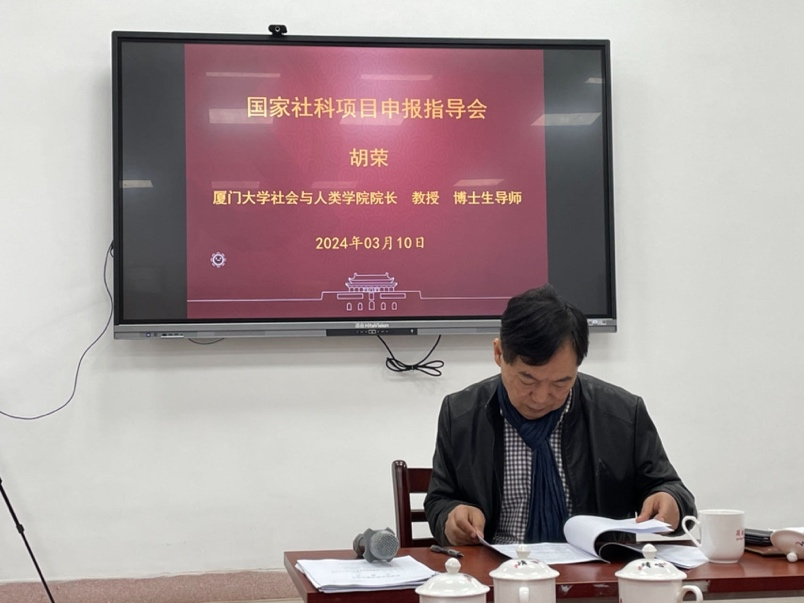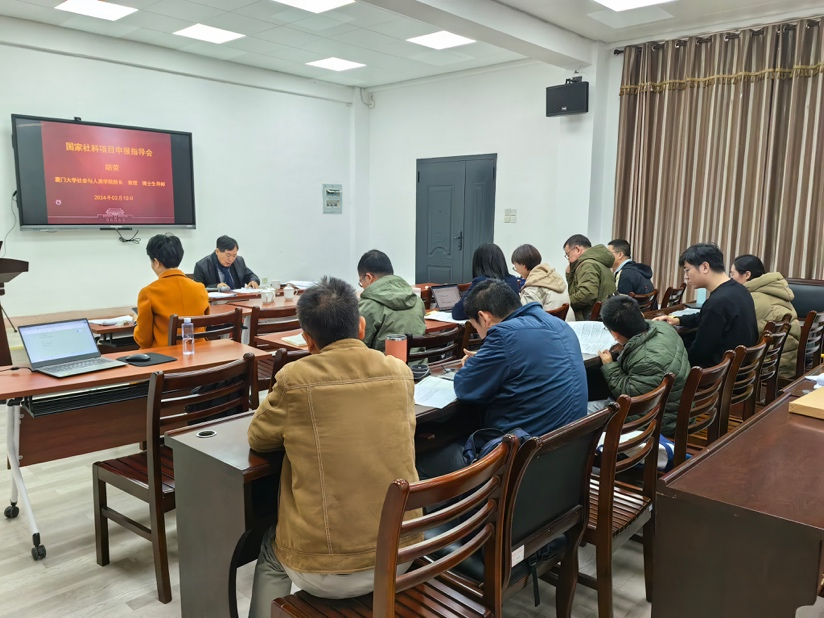 胡荣教授首先对国家社科项目申报的选题及论证过程等关键环节进行总体说明和专业讲解,然后对每位教师的申报书进行细致耐心的一对一指导,并就如何提出具有价值的研究问题、如何写好文献综述、如何构建研究框架、如何呈现研究方法等进行了重点指导。胡荣教授指出,第一,国家社科基金申报应体现良好的现实关怀和政策价值,注重与国家重大战略及重要现实问题相结合。第二,论证过程应突出问题导向、重视文献回顾、厘清框架思路、明确研究方法。第三,申报书应详略得当,一定要将复杂的问题简单化,而不是将简单的问题复杂化。第四,项目申报无法追求速成捷径,应尽早准备、持续努力、久久为功。