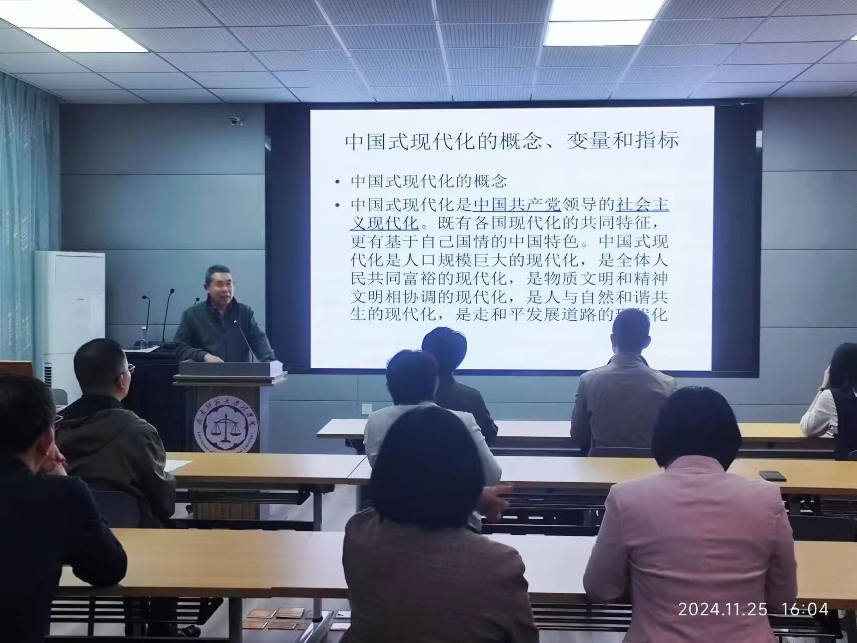 社会工作系余瑞萍老师做了“党的二十届三中全会精神解读”的报告。她从全会召开的背景与意义、主要内容与精神实质等方面展开阐述,认为全会为推进中国式现代会指明了方向,提供了根本遵循,这对于指导我们未来工作,推动高校事业发展具有重要意义。全会强调了进一步全面深化改革的重要性,这是推动中国式现代化的强大动力和制度保障。要以改革创新精神推动各项工作取得新突破,不断提升办学水平和人才培养质量。