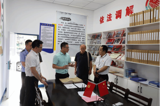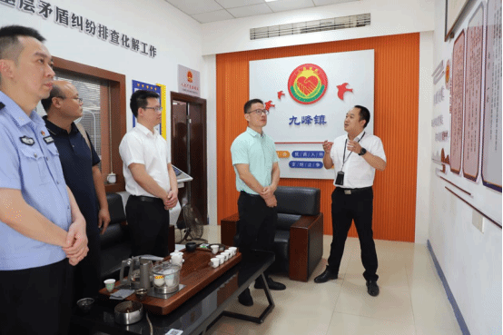何院长一行对九峰镇在公调对接工作中积累的丰富经验表示赞赏,并与工作人员就公调对接模式中遇到的实际问题和困难进行了深入交流和探讨,围绕提升调解队伍专业化能力、加强源头预防与法治宣教结合,完善调解联动机制等方面提出建议。