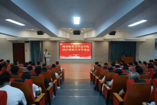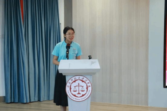 2025级法学3班本科生苏樱曦作为新生代表发言。她表示新时代青年当“博学”以广见识,“明理”以辨是非,更要“砥砺”以坚意志,“笃行”以担使命,不负韶华、不负时代。