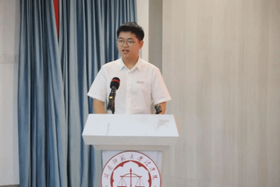 2023级法学专业本科生代表陈坤鹏作为在校生代表发言。他通过分享自己初入学时的经历和过去两年对学习法学专业知识的感悟,勉励学弟学妹们珍惜在校时光,善于思索求学。