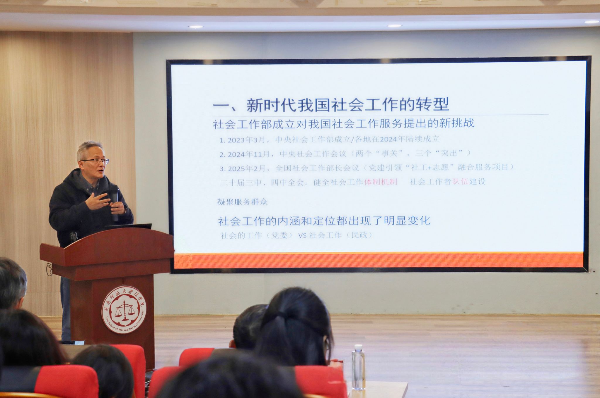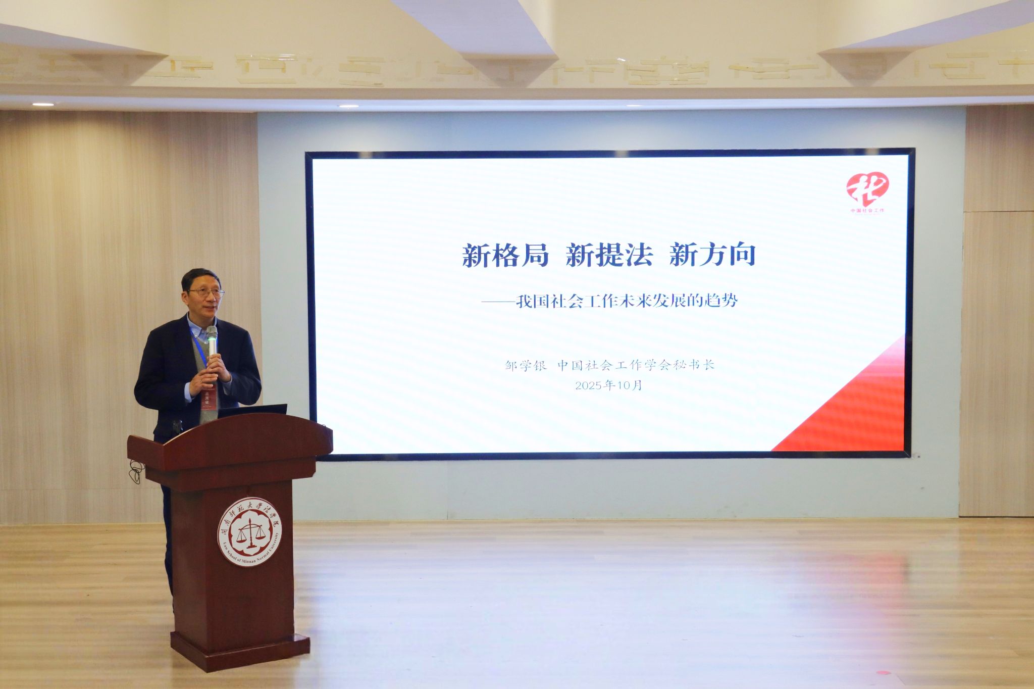 在专家主旨演讲环节,中国社会工作学会秘书长邹学银教授、厦门大学童敏教授、华东师范大学黄晨熹教授、中国人民大学卫小将教授、上海大学范明林教授、西北师范大学李怀教授、中山大学梁玉成教授围绕我国社会工作的发展趋势、转型路径、基层治理、AI赋能等前沿内容作报告。