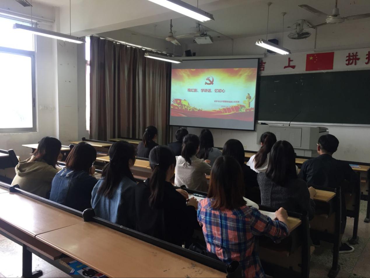 学生第三党支部在博西406教室对《习近平谈治国理政》第二卷部分选段进行了学习与讨论,并观看红色经典纪录片《不忘初心继续前进》。