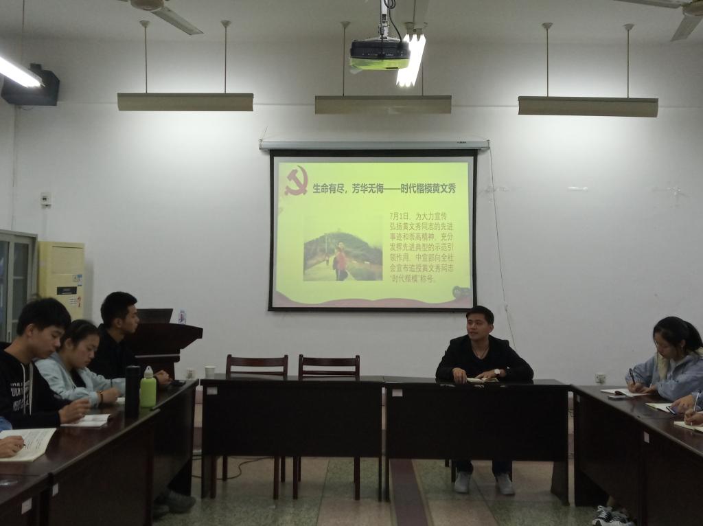 11月19日上午,法学与公共管理学院学生第二党支部于会议室开展“生命有尽,芳华无悔——时代楷模黄文秀”主题党日教育活动。会议由支部书记严鹏辉主持。