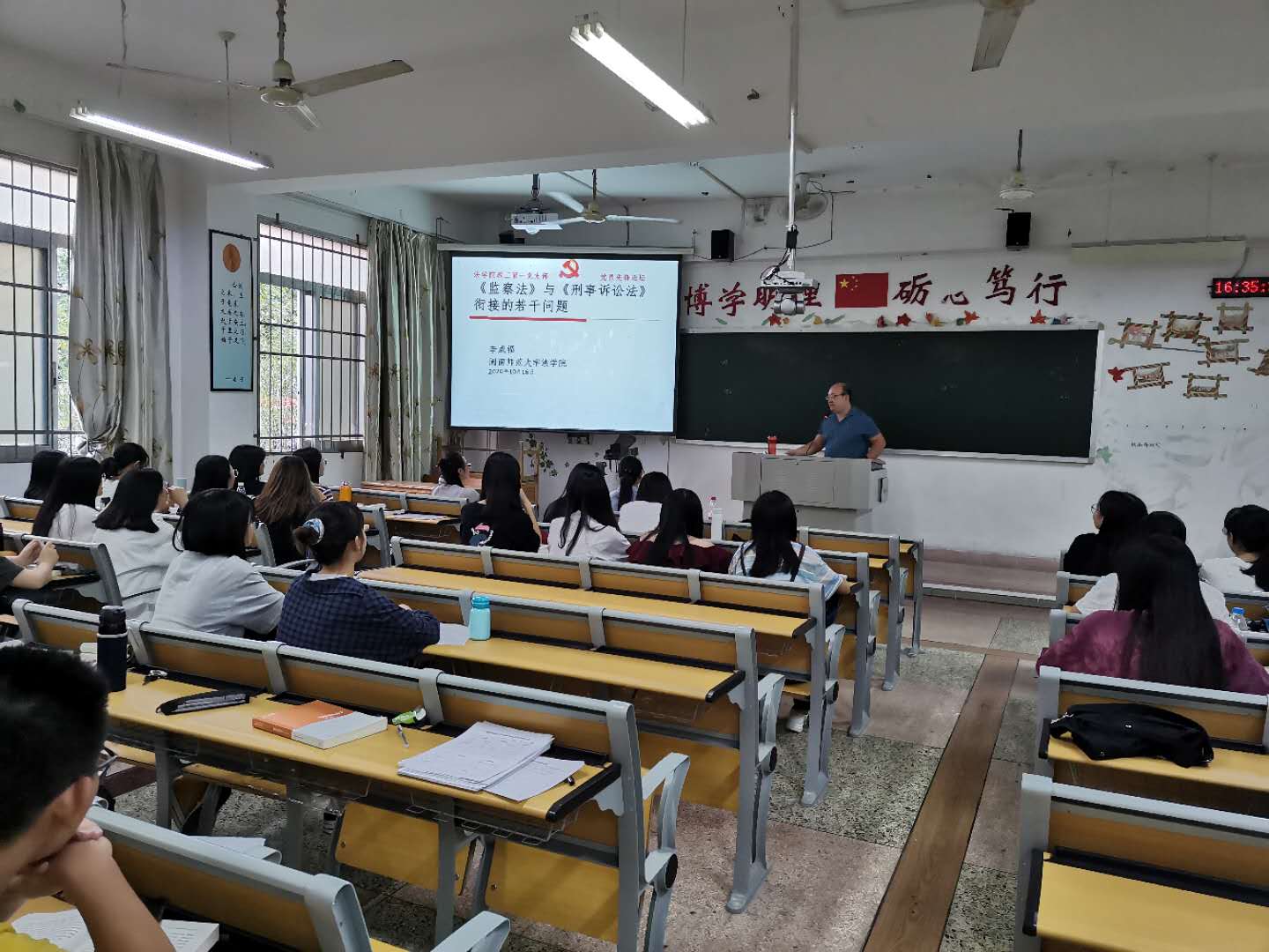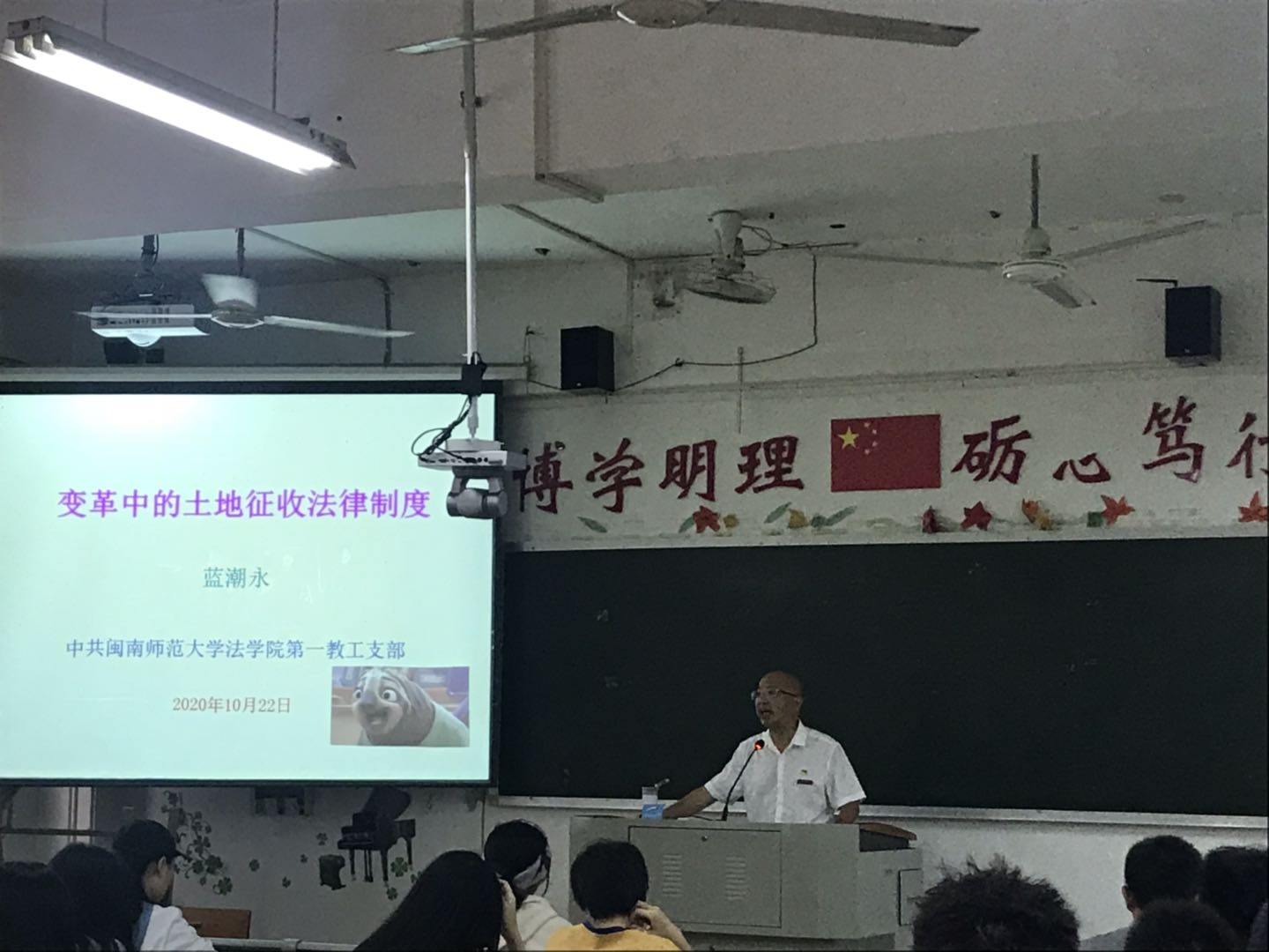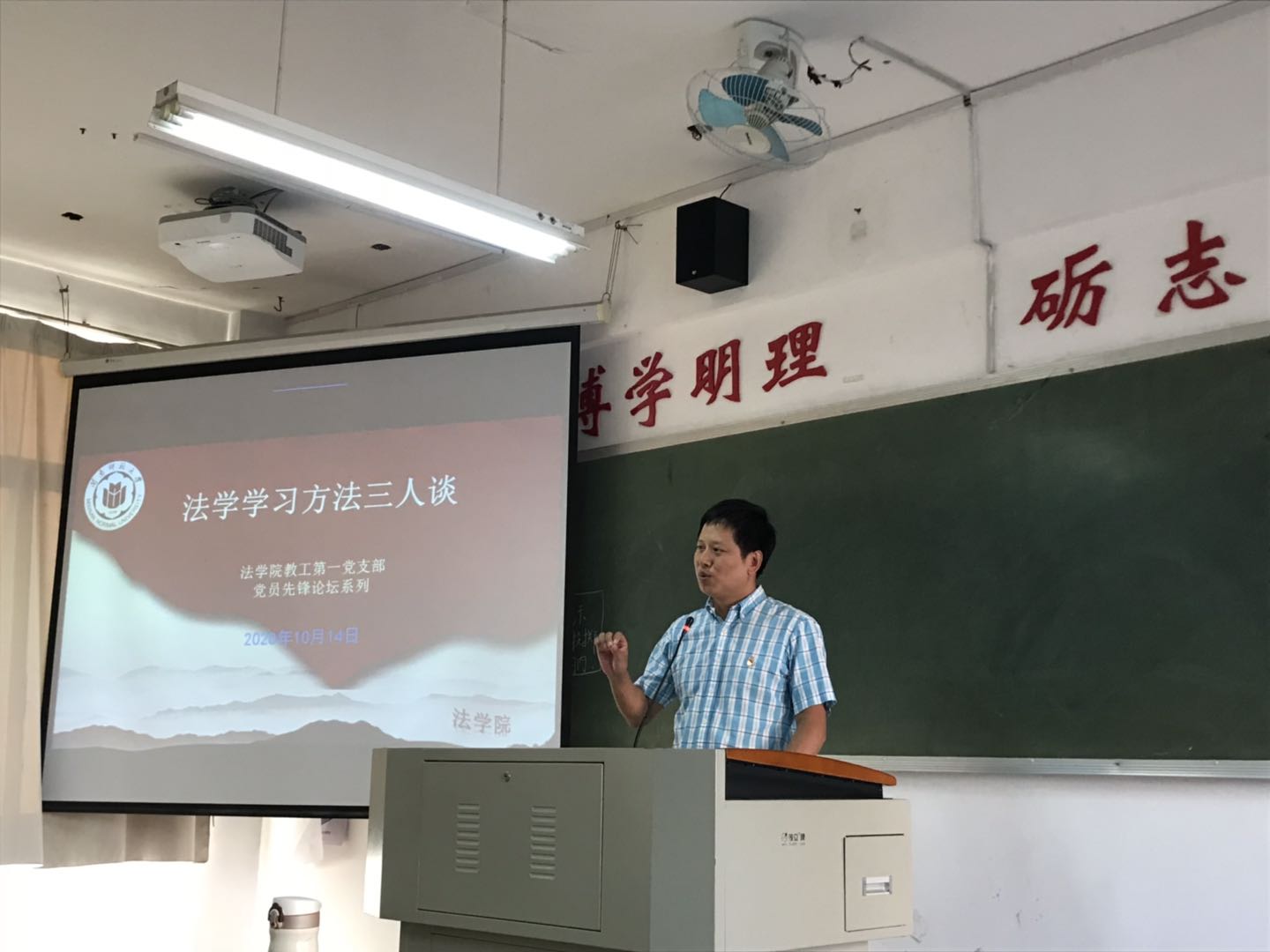 教工第一党支部党员教师纷纷开展“党员先锋论坛”系列活动。10月14日下午,李莉、韩巧香、王贺洋三位党员老师以“法学学习方法三人谈”为主题,结合各位老师自己的学习成长经历,向学生介绍法学学习方法。李莉老师指出当下学生学习最缺乏的是“专注”,希望学生针对自身特点摸索出适合自己的学习方法,提高学习效率。韩巧香老师强调大学生应当尽早做好大学学习规划以及未来工作规划,制定好人生目标,努力奋斗。王贺洋老师建议学生多读“无用”的书,改变应试思维和学习习惯,学会独立思考,全面提高自身综合素质和人文素养。三位老师主题发言后,还与学生进行了问答互动。李成福老师、肖世贵老师分别以“监察法与刑事诉讼法衔接若干问题”、“扫黑除恶法治宣传”为主题举办了讲座。蓝潮永教授举办“变革中土地征收法律制度”讲座。