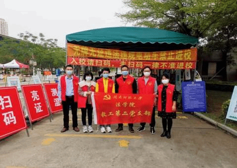 西门开展疫情防控志愿服务活动。支部党员们认真负责的检查每一位入校人员是否符合相关要求,协助维持秩序,用实际行动诠释了共产党员的担当。