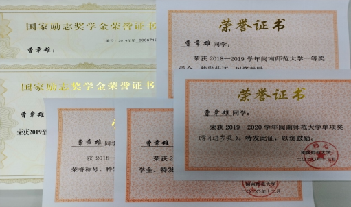 授予“校三好生标兵”荣誉称号, 2020年参加全国大学生英语知识竞赛获三等奖,2021年被风车动漫p