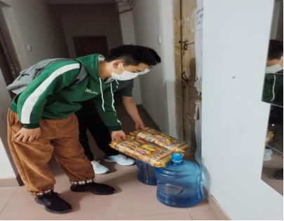 图6 疫情期间给学院隔离人员送物资
