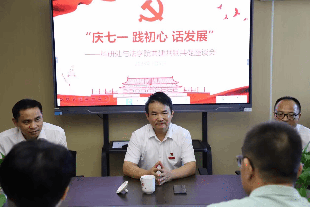 科研处党支部书记、处长林福财就当前学校的科研发展态势做了介绍,并表示将积极践行主题教育总要求,多与学院沟通交流,积极推进“我为群众办实事”,促进相关业务工作的互帮互助,进一步指导提升学院教师科研意识和科研水平。